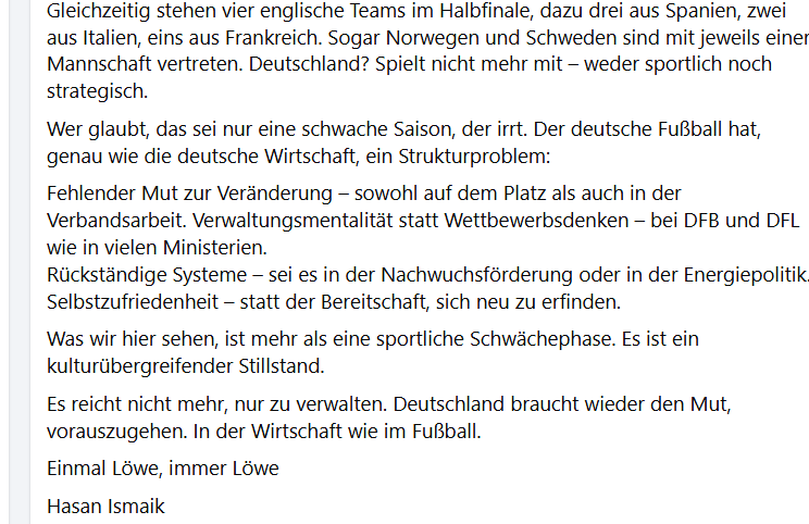 Einfach mal aus dem nichts in ca. 20 Sätzen eine Generalkritik an Deutschland. Wow.