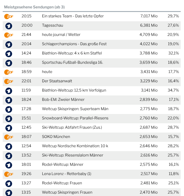Was falsch ist. Nicht die zahl der Zuschauer hat sich halbiert sondern lediglich die Minuten die lineares Fernsehen konsumiert wird. Das ist ein wichtiger Unterschied, den du anscheinend aber nicht siehst. Natürlich wird viel mehr gestreamt, auch ich schau mir gerne Dokus auf Youtube an, heisst aber nicht dass ich kein lineares Fernsehen schau. Früher vorm Internet-Zeitalter war das natürlich anders.