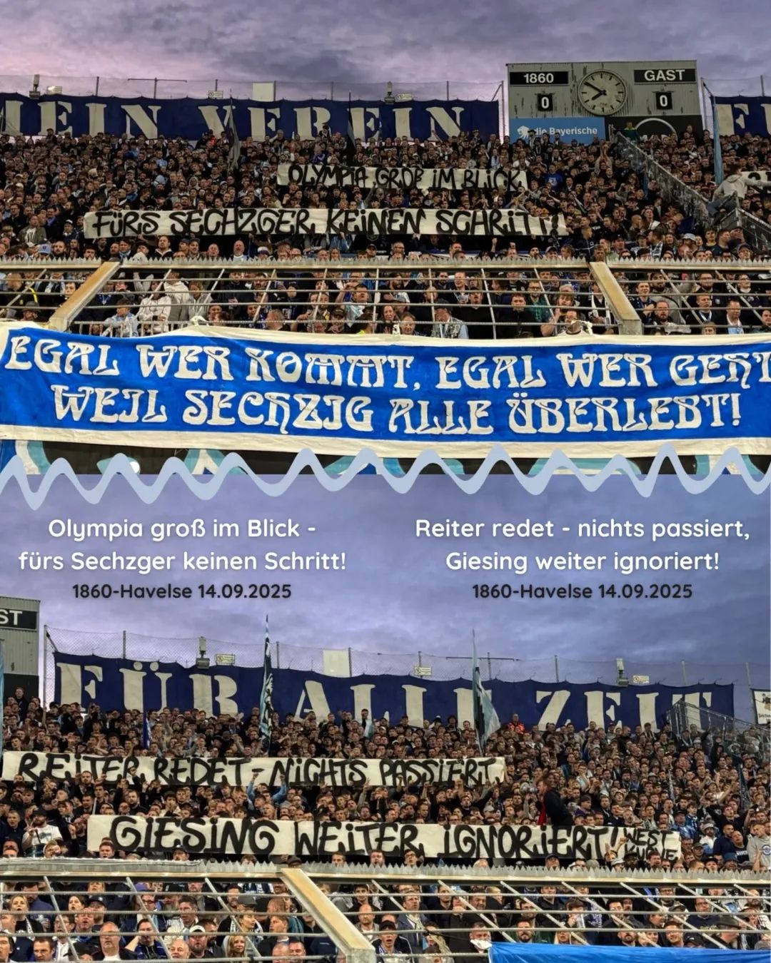 Da es mir aber ned ums Oly geht, sondern ums Sechzger bzw um den Klub slebst, ist das einfach ein symbolhaftes Beispiel. Weil es einfach ein Schema verdeutlicht das unabhängig von Giesing Oberwiesenfeld oder Riem immer abläuft.
